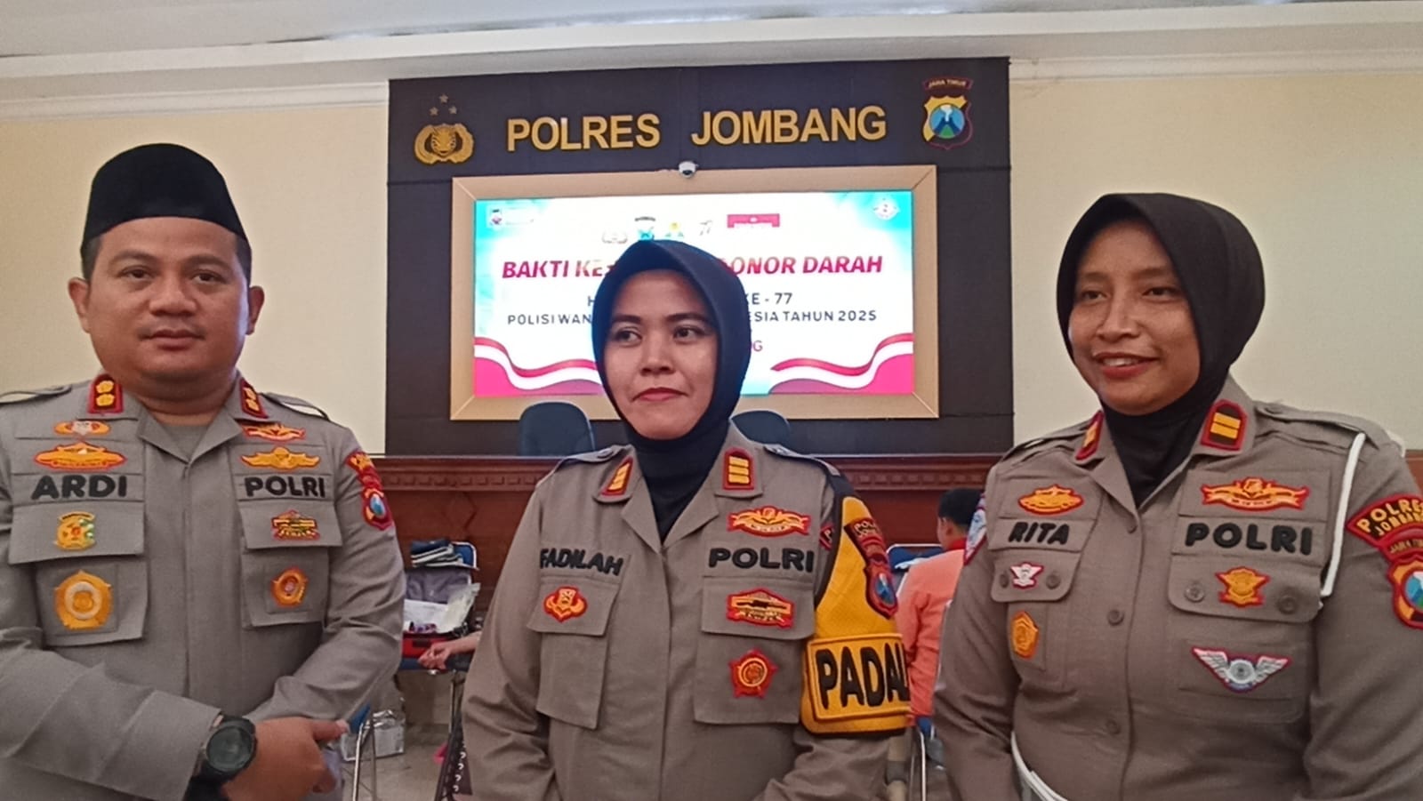 Ia mengatakan bahwa donor darah tidak hanya diikuti oleh Polwan, tetapi juga seluruh personel Polres Jombang. Adapun mereka yang bisa diambil darahnya setelah lolos pemeriksaan kesehatan.