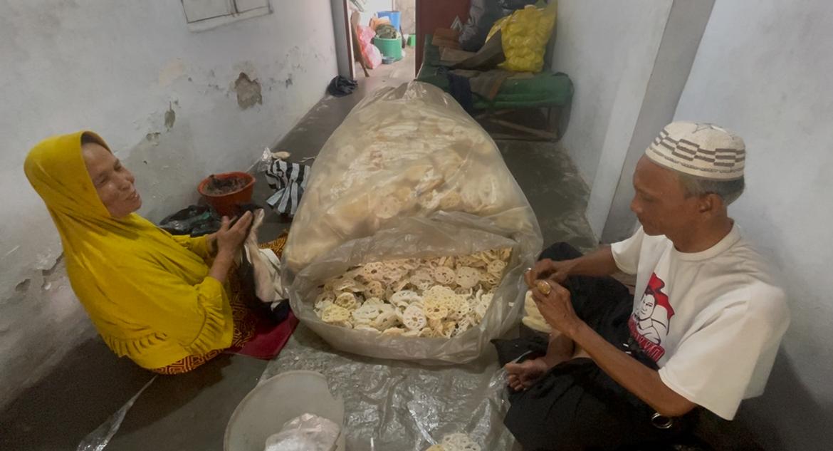 Pria lansia tersebut memulai aktivitas usai salat subuh berjamaah. Dia bantu oleh sang istri. Selesai menata kerupuk dagangannya ke dalam dua keranjang besar, sekitar pukul 06.00 WIB Sutaji berangkat mengais rezeki.